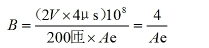 現(xiàn)在咱們來看磁芯,假定二管是一般的一般的二管,通態(tài)電壓大約為1V,電流為10A/200=50mA?;ジ衅鬏敵鲭妷簽?/span>1V,加上二管的通態(tài)電壓1V,總電壓大約2V。250kHz頻率作業(yè)時(shí),磁芯上的磁感應(yīng)強(qiáng)度不會跨過